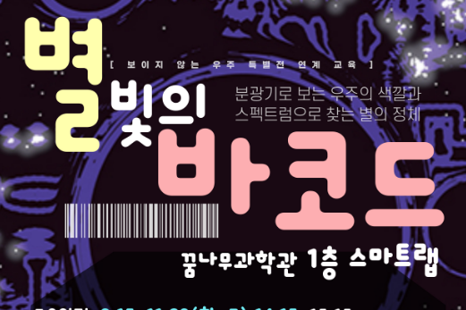 꿈나무과학관 1층 스마트랩  | 별빛의 바코드  | 14:15  | 60분 이내  | 초등 이상  |